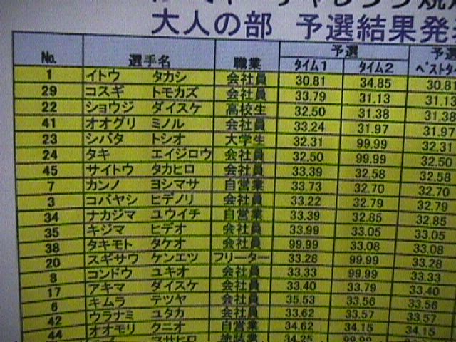で決勝・・・1回目は33秒前半・・・それなりにいい成績だったのに・・・